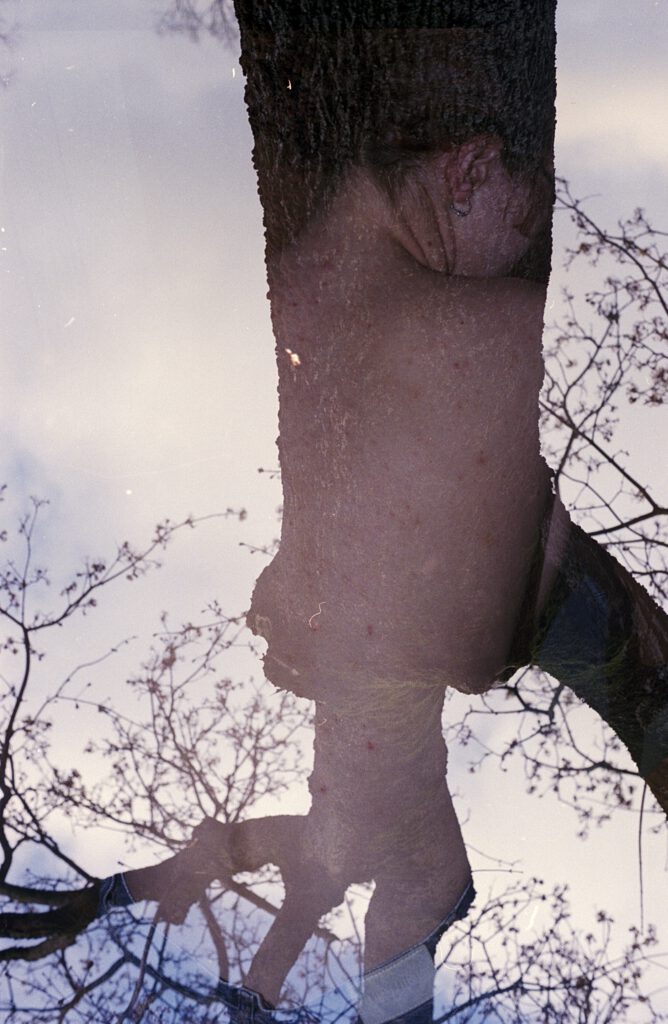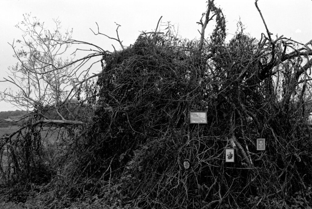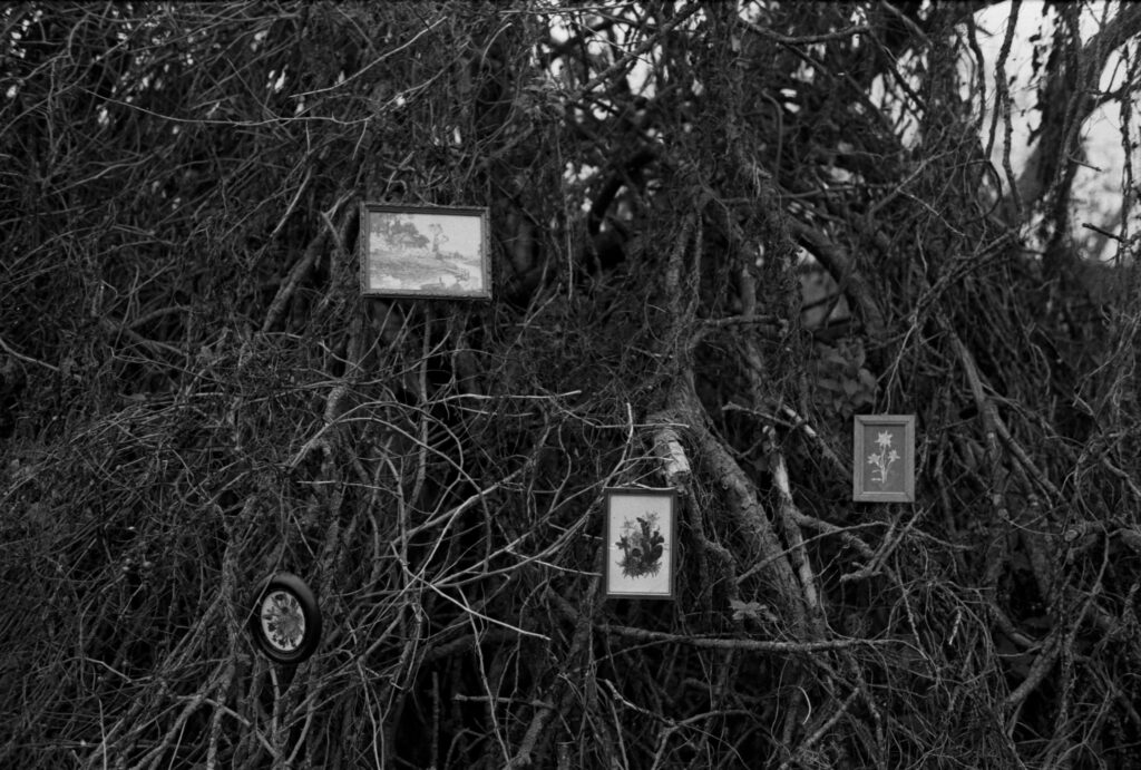 A photo series that inspired the film 'Wandelende Tak'. Where inside meets outside and the world transforms into a set, a young girl finds her way to a mysterious three. There she drops her collection of different objects and rearranges her new home.